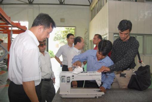 2010年7月26日应印度地区销售需要,我厂举办了一期厚料缝纫机维修技能短期培训班,组织印度及埃及销售人员来厂参加培训。为更好的提高教学水平,我厂加派师资力量,由国贸部牵头,企管科做好前期学习安排和后勤保障工作,陆叶飞、朱伟清等12名老师带教,各部门通力合作。开学典礼上石磊副厂长向学员介绍了我厂的概况和发展历程,殷切希望学员在培训的这段学习、生活中能学到技能,顺利完成这次学习任务,并加强双方交流,为更好的开拓国外市场做好准备。并带领学员们参观了厂区。