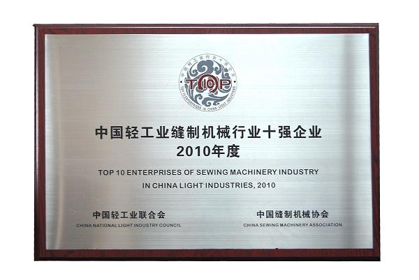 上海惠工缝纫机三厂获评“2010年度中国轻工业缝制机械行业十强企业”称号